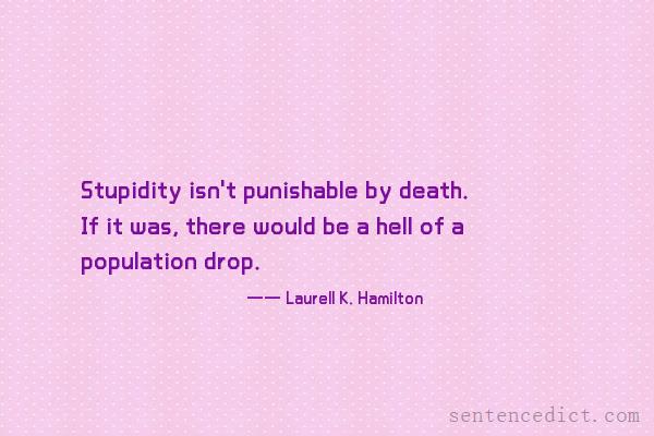 | sentence: | Stupidity isn't punishable by death. If it was, there would be a hell of a population drop. Laurell K. Hamilton |