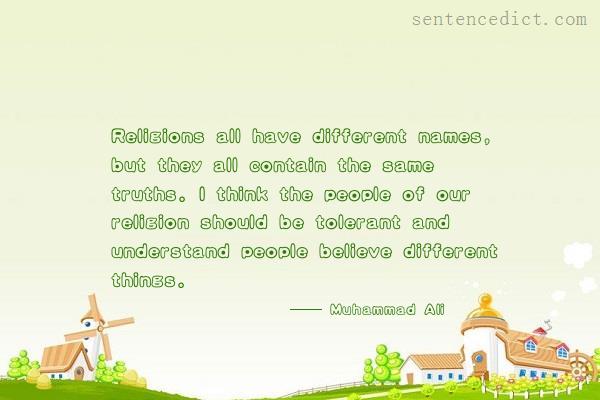 | sentence: | Religions all have different names, but they all contain the same truths. I think the people of our religion should be tolerant and understand people believe different things. Muhammad Ali |