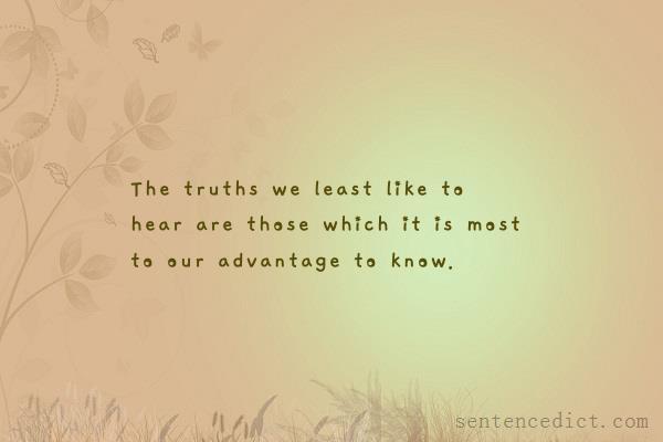 | sentence: | The truths we least like to hear are those which it is most to our advantage to know. |