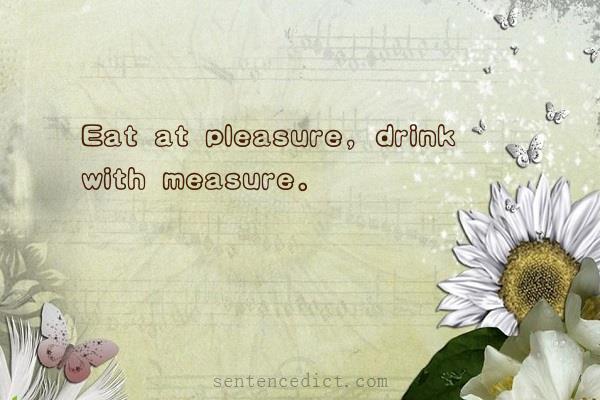 | sentence: | Eat at pleasure, drink with measure. |