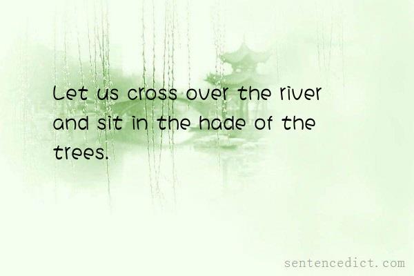| sentence: | Let us cross over the river and sit in the hade of the trees. |